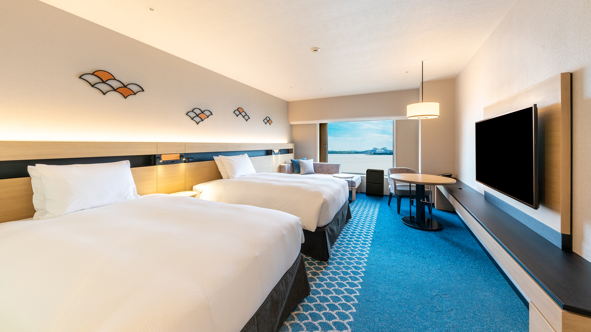 全828室からなる大型のリゾートホテルで、〝海と空に囲まれた開放感あふれるホテル〟を謳う通り、オーシャンビューの客室の窓からは広大な東京湾と広い空を一望できます。また、ヒルトンブランド屈指のホスピタリティを随所で感じることのできる高級ホテルです。