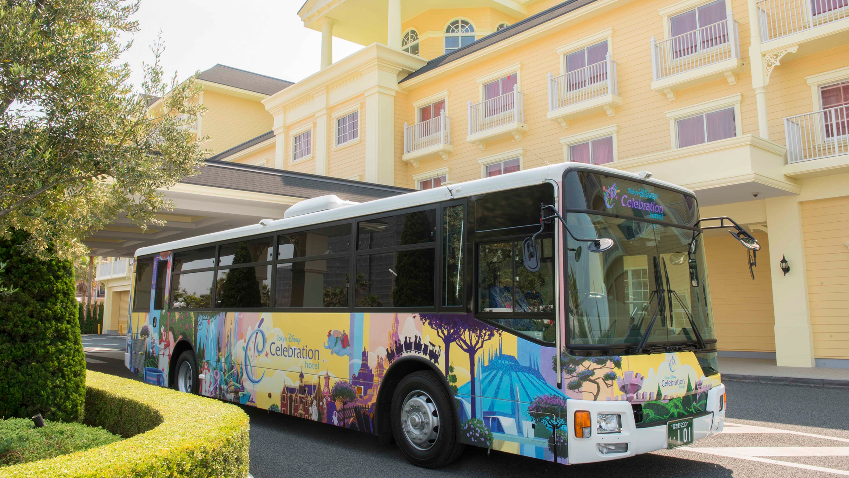 新浦安エリアに位置するセレブレーションホテルと各パーク間は無料のシャトルバス「ウィッシュ&ディスカバー・シャトルバス」が運行しています。