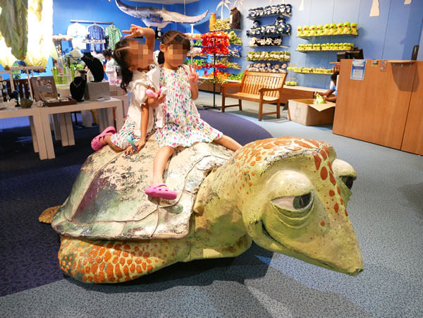 アウトリガー併設の水族館アンダーウォーターワールドの売店のカメさんに乗って記念撮影も♡