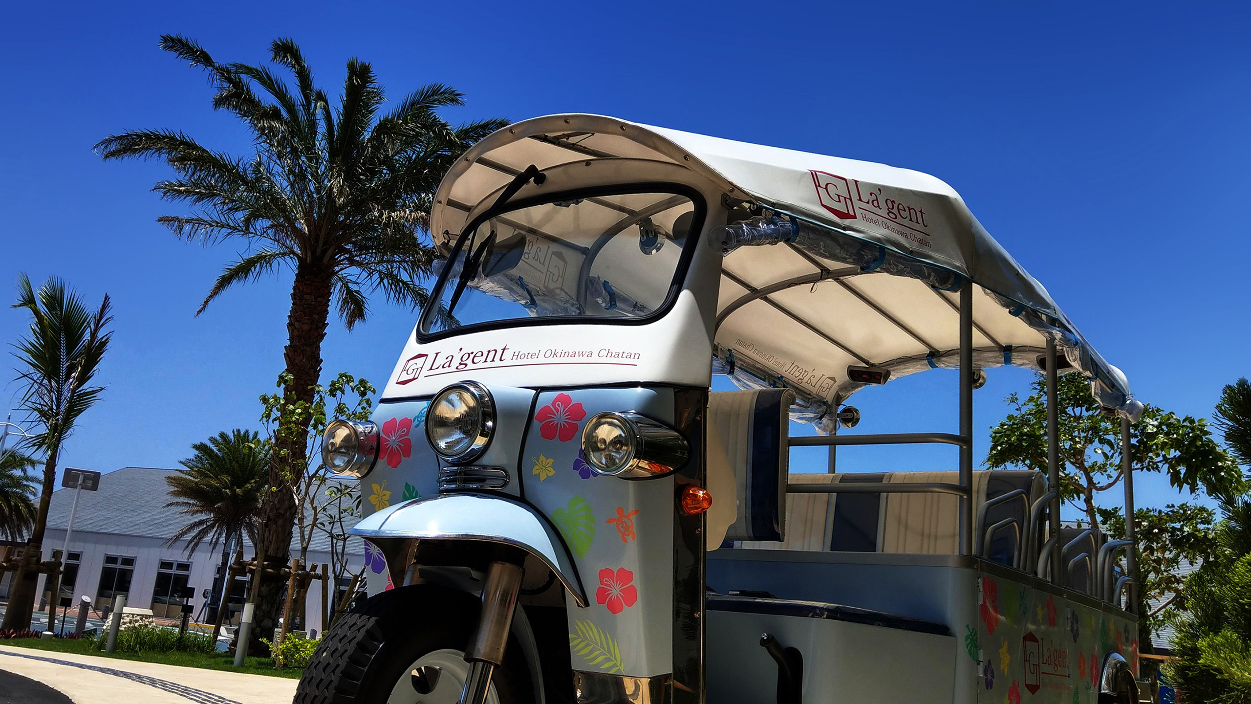 ラ・ジェント・ホテル沖縄北谷は、アメリカンビレッジまでの無料シャトルバスならぬ無料周回トゥクトゥクもある北谷観光の便利なホテルです!