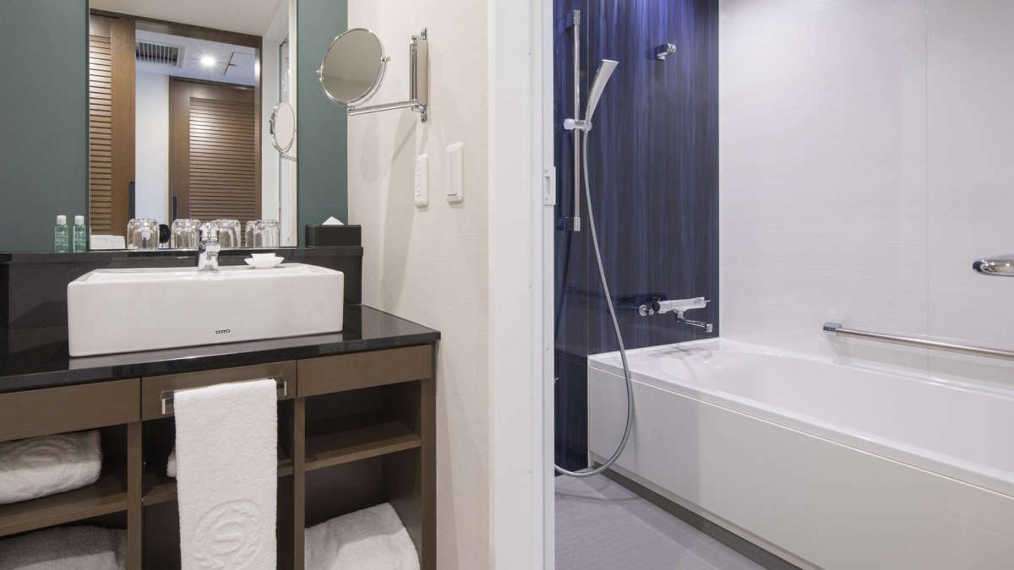 小さなお子さんがいる場合、洗い場があるかどうかはホテルを選ぶ上でとても重要かと思います。シェラトン・グランデ・トーキョーベイ・ホテルのパークウイングの客室には全室洗い場が付いているので、小さなお子さんと一緒でもゆったりとお風呂に入ることができます。