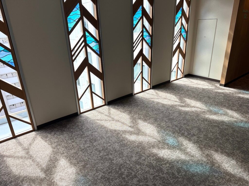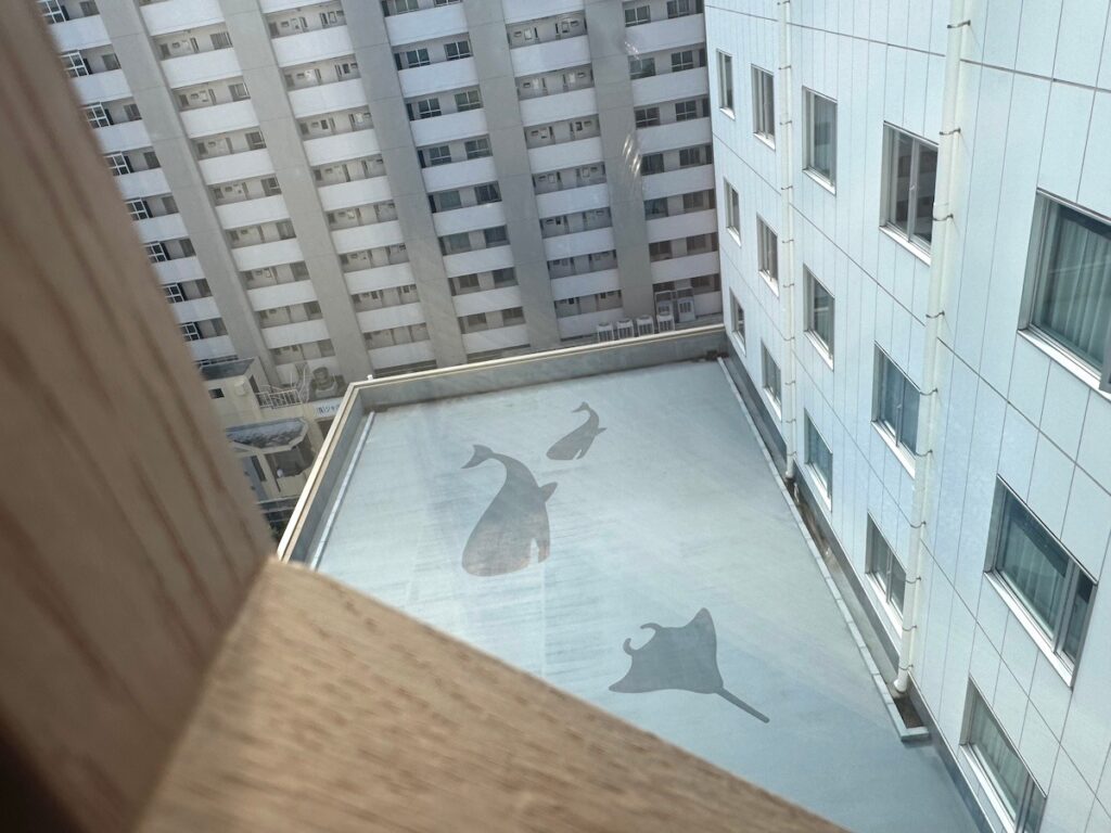 その他にも、館内を歩いていると沖縄の青い海を彷彿とさせる美しいステンドグラスや、窓の外を見ると海の生き物のシルエットが描かれていたり、随所に滞在を楽しませてくれる工夫がありました。