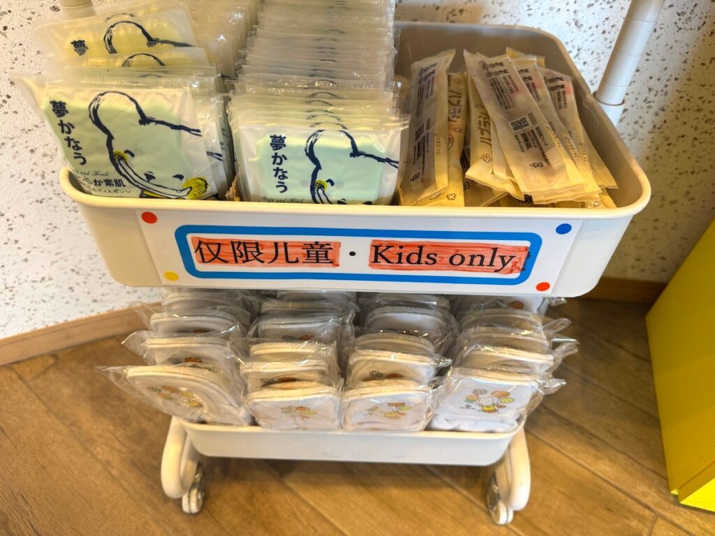 子供用の歯ブラシやスポンジ、スリッパなどもありました。
