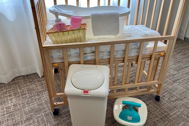 赤ちゃん用の貸出アイテムもたくさんあり、初めての子連れ旅でも安心です。