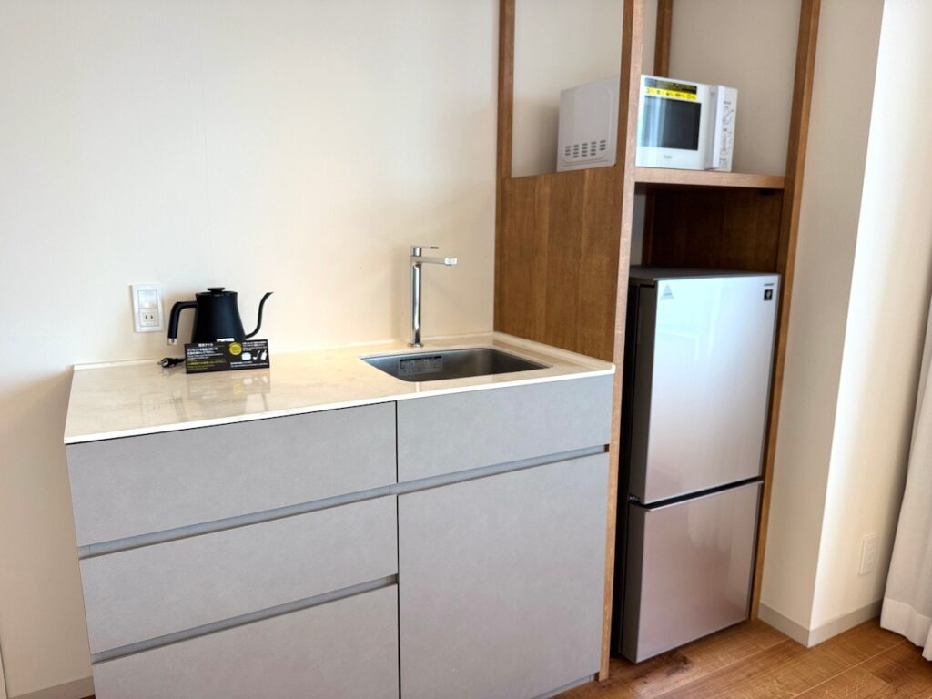 離乳食の温めや、ちょっとした料理にも対応できるため、特に乳幼児連れの家族には使いやすい設備が整っています。